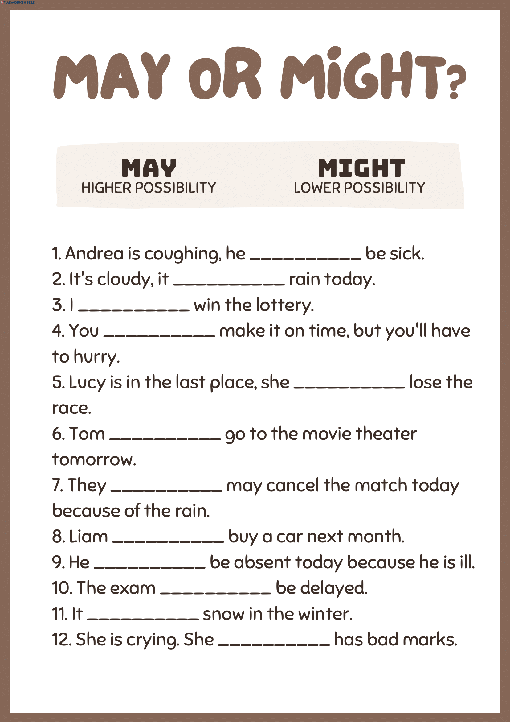 May, Might, Must, Shall and Should Complete All the activities and Finish your Exam For Grades Download May, Might, Must, Shall and Should Lesson Download Here Exercises For Practice Download Practice Worksheets Practice Sheet -1 Practice Sheet - 2 Download Here Download Here Download Here
